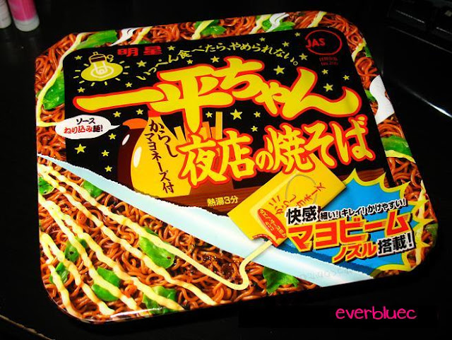 Hmm, she loves it and xiaomei said it taste like Takoyaki (you know the octopus bbq balls) and I find that it was a cross between of Yaki tori and Takoyaki... I guess the soya sauce and mayo made the instant noodles taste like it.